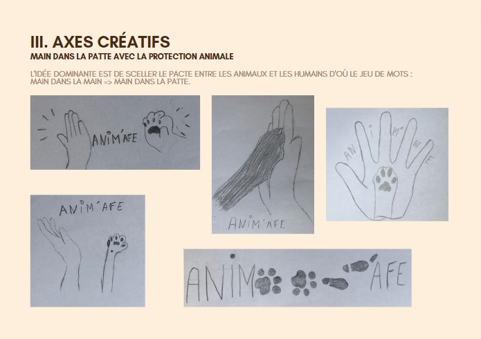 Réalisation d'un logo dont le thème était la sauvegarde animalière. J'ai du choisir un nom d'association et faire plusieurs croquis sur 3 axes créatifs différents. Ensuite, je prend un de ces croquis que je développe sur Illustrator (voir dernière capture d'écran). L'intégralité du logo a été créée sur le logiciel Adobe Illustrator.
